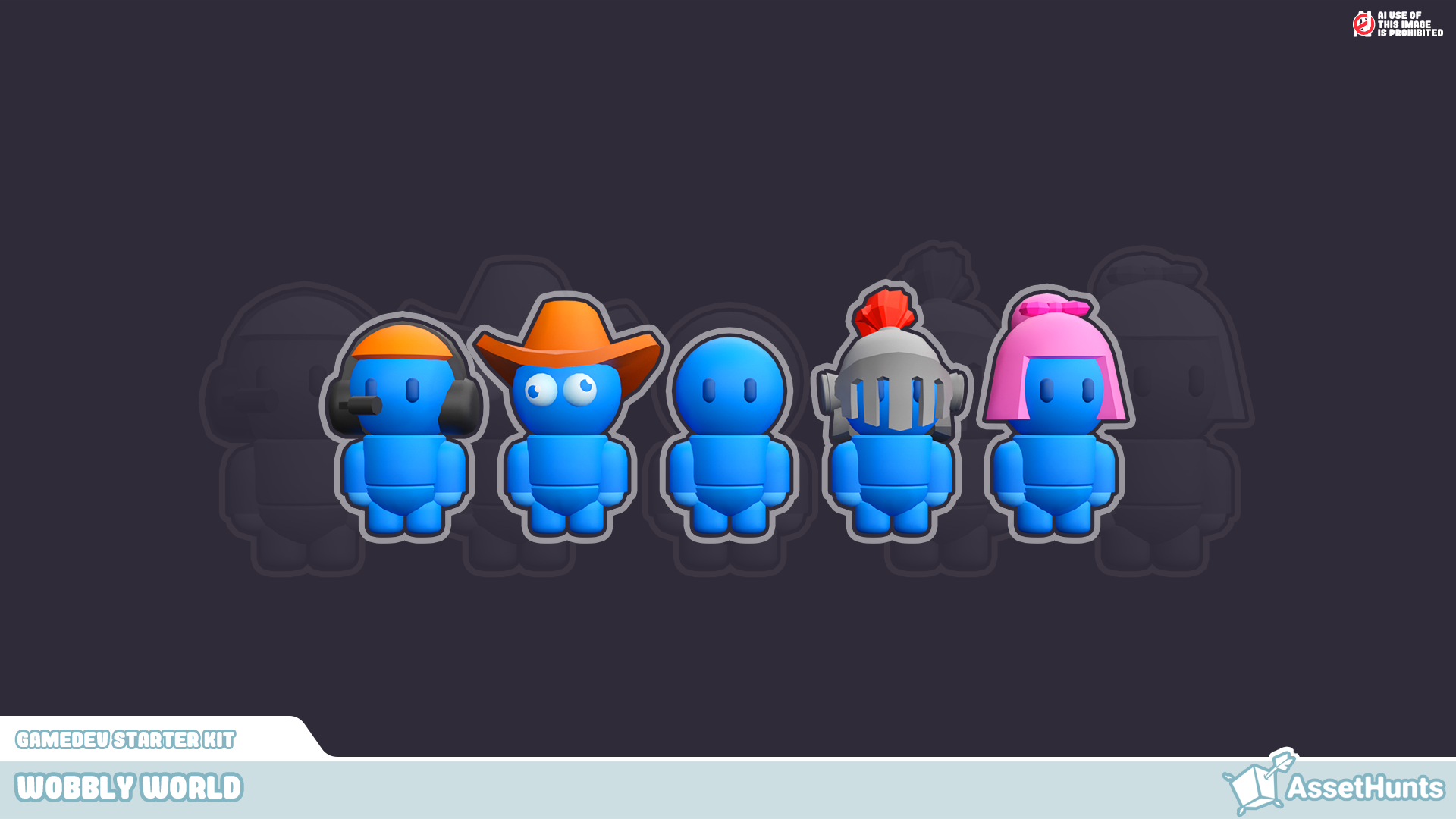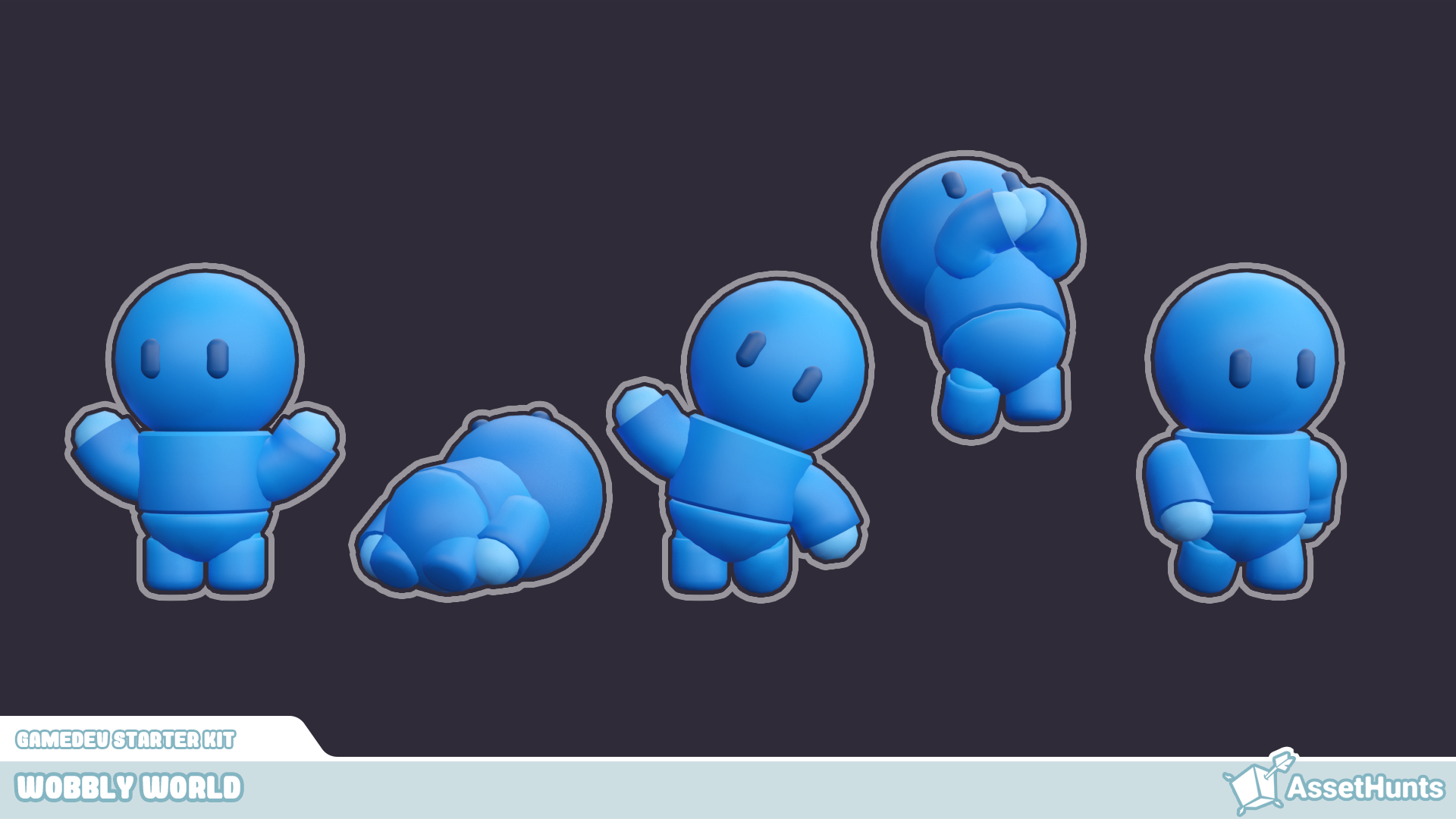 AssetHunts GameDev Starter Kit - Wobbly World contains high-quality, game-ready modular assets to build any cute Battle Royale project.